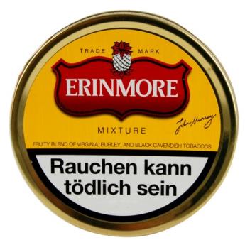 »Irish Pure«. Nach traditionellen Mischungsmethoden und überliefertem Rezept aufbereitet. Bester Burley, aromatischer Black Cavendish sowie natursüße goldund rotbraune Virginias geben dieser Mixture ihre intensive Duftfülle. Ein kontrastreicher Mixed Cut mit dem unnachahmlichen Erinmore-Aroma.