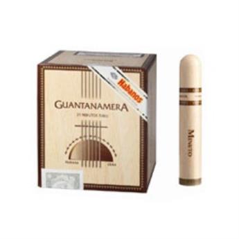 Die günstige kubanische Guantanamera Minutos A/T Zigarre ist hier verpackt in der 20er-Kartonschachtel / Display (geänderte Produktverpackung entspricht nicht dem hier gezeigten Bild). Jede Minuto steckt in einer Tube aus Kunststoff. Das Produkt gibt es seit 2012 auf dem deutschen Markt nachdem der beliebte Shortfiller ohne Tube in der Kistenverpackung vom Markt genommen wurde.