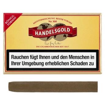 Handelsgold ist nicht nur eine der bekanntesten Zigarillound Zigarrenmarken in Deutschland, sondern steht als eine Ikone der deutschen Wirtschaftswunderjahre auch für Tradition. Da verwundert es nicht, dass einer der populärsten deutschen Politiker Handelsgold seine Lieblingsmarke nannte Ludwig Erhard. Die Marke Handelsgold bietet eine große Auswahl an unterschiedlichen Zigarren und Zigarillos. Kompromisslose Qualität und entschiedene Preiswürdigkeit machen die Handelsgold seit Jahrzehnten so erfolgreich.