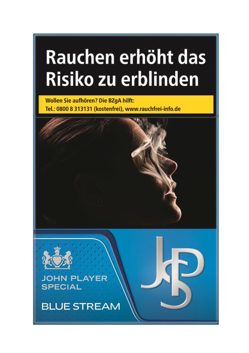 John Player Blue Stream, würziger American Blend für das besondere Raucherlebnis. Im Rauch nikotinarm.