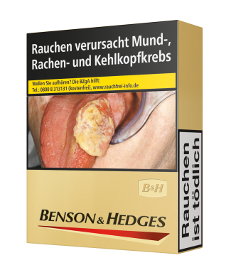Die Geschichte der klassischen Benson & Hedges GOLD, wie Sie sie heute kennen, beginnt in den sechziger Jahren. Mitten in die Unruhen der Endsechziger und der immer stärker werdenden Hippieund Popkultur wird die Benson & Hedges GOLD geboren. Ein Klassiker aus feinstem und erlesenem Virginia-Tabak auch als Big Box erhältlich.